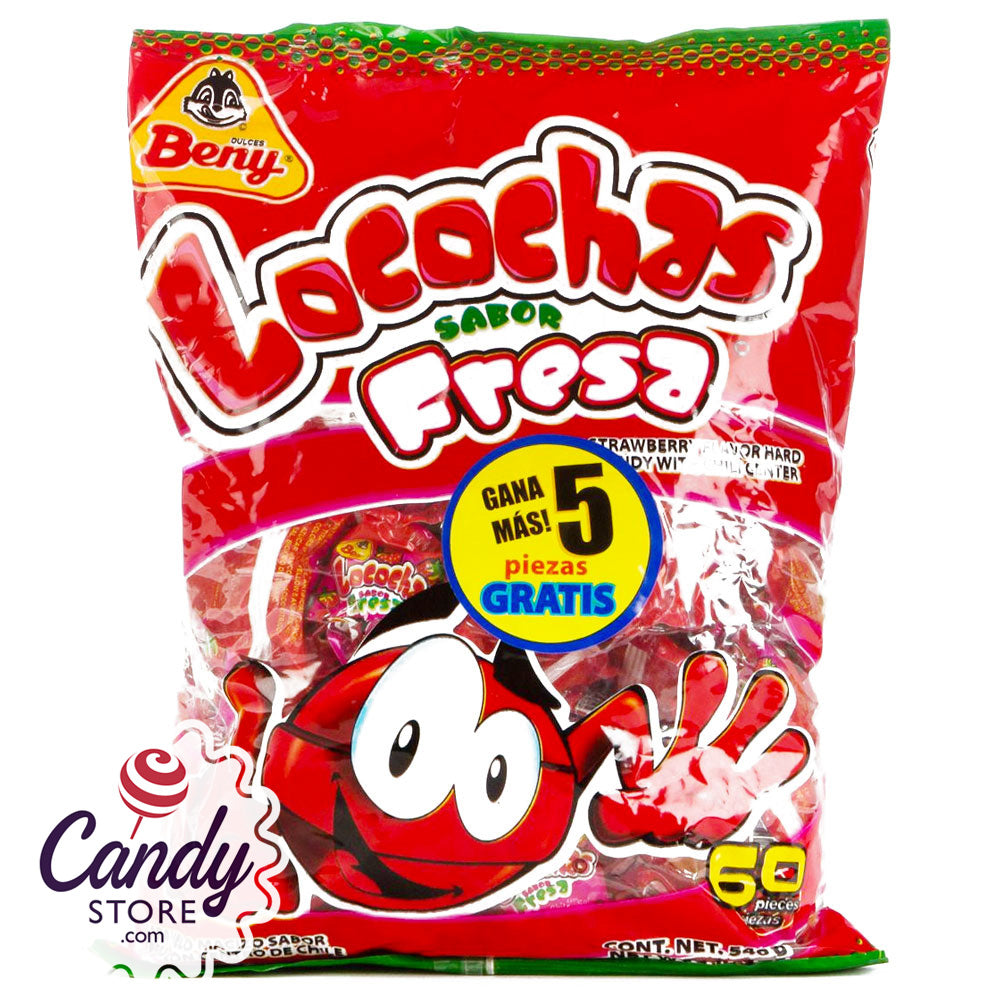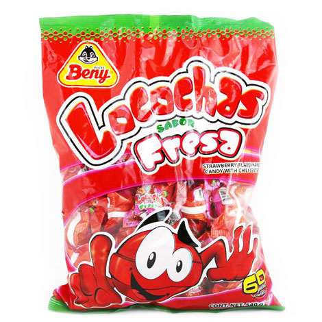 Strawberry hard candy with a chili center is a popular Mexican candy! Caramelo macizo con centro chile. Beny Locochas Fresa.
