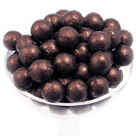 Brown foil wrapped chocolate balls are a handsome treat that’s full of rich flavor. This simple confection looks beautiful and works well in a variety of settings. Each bite-sized piece forms a solid orb made with high quality milk chocolate.