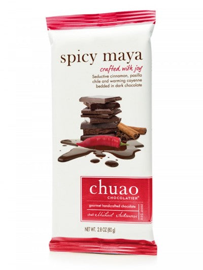Spicy Maya gourmet handcrafted chocolate bars from Chuao Chocolatier. Using premium ingredients, Chuao has created a wonderful chocolate bar based on the flavorings used by acient Mayans. Cinnamon and dark chocolate with an infusion of cayenne and pasilla chile. A sweet and seductive chocolate bar, inspired by the movie Chocolat.