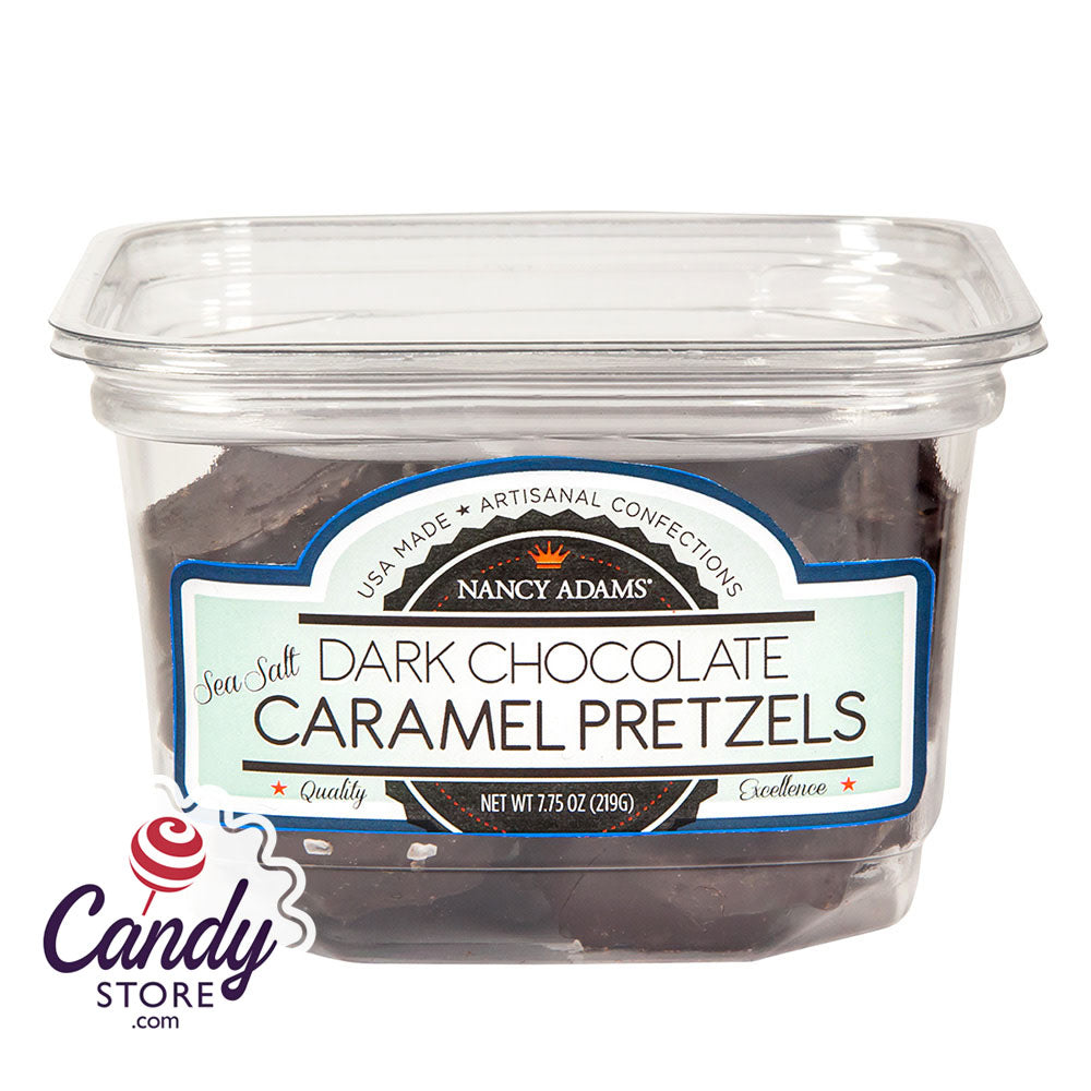 Dark Chocolate Sea Salt Caramel Pretzels 7.75oz Tub Nancy Adams – 12ct