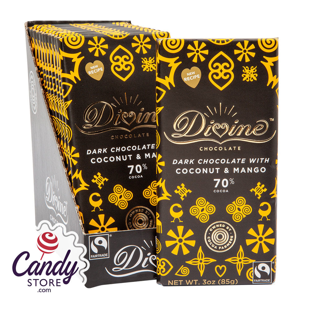 Divine 70% Dark Chocolate With Mango & Coconut 3oz Bar – 12ct
