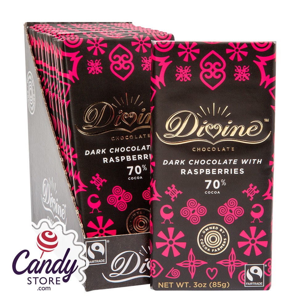 Divine 70% Dark Chocolate With Raspberries 3oz Bar – 12ct