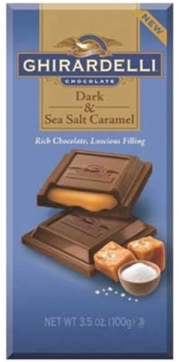 Luscious caramel fulling inside sea salted dark chocolate! Ghirardelli dark chocolate is to die for and these chocolate bars have lovel creamy caramel inside too.