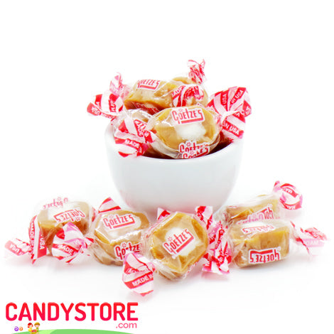 Each Caramel Cream (or Bull’s Eye), starts with a white cream filling at the center. The outside includes a generous layer of high quality caramel to create a round treat. Our bulk Caramel Creams arrive individually wrapped with nostalgic red Goetze branding.