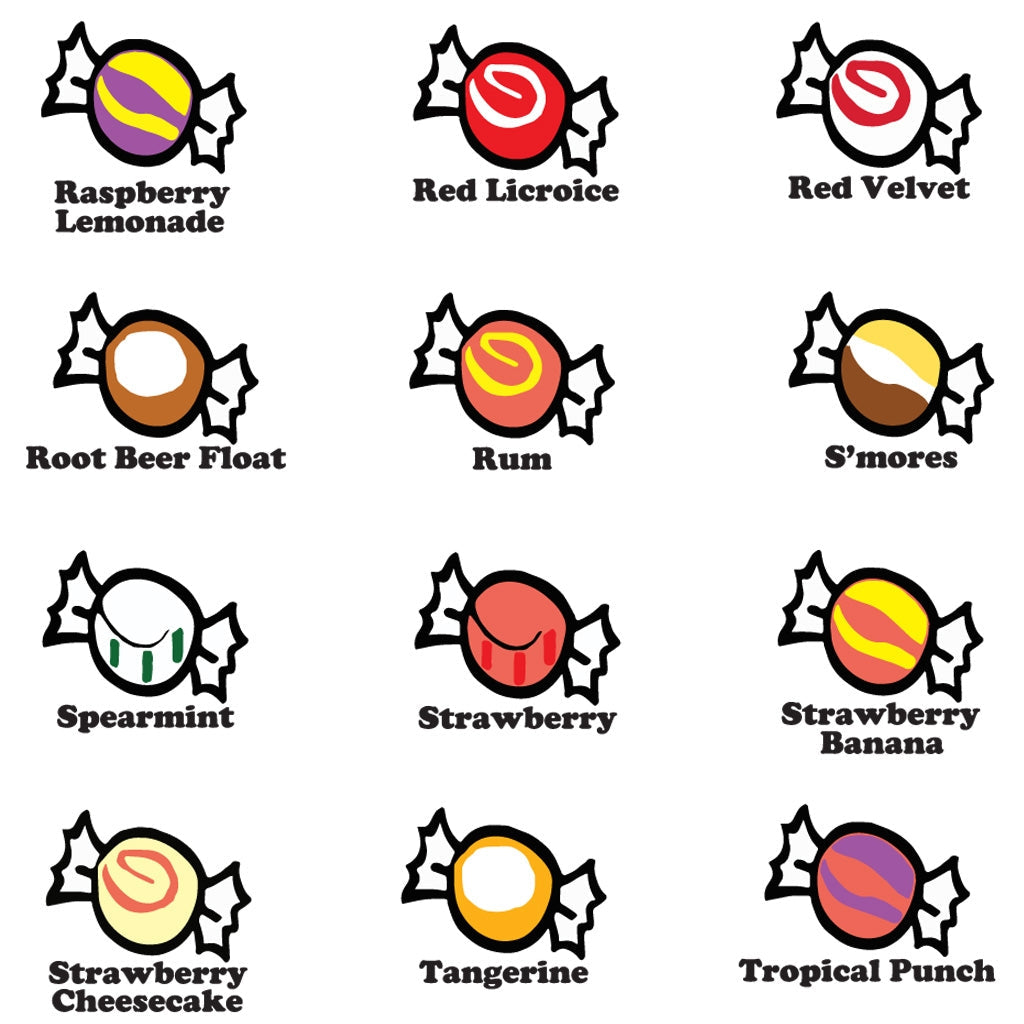 Choose from over 60 different flavors or mixes. The Assorted Taffy mix contains about 15 flavors. See list of flavors below.