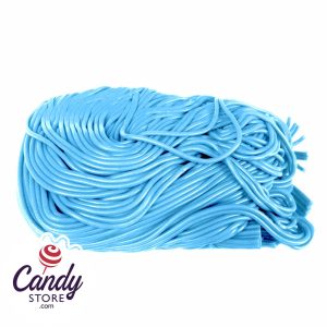 Blue raspberry licorice laces are fun, tasty, and beautiful! Each piece is long and thin, forming a solid stringy lace of tasty confection. They bend and stretch, making this a fun snack for kids who love to play with their food.