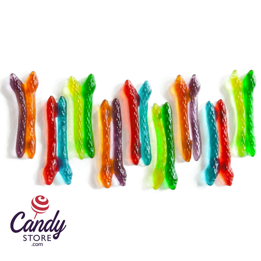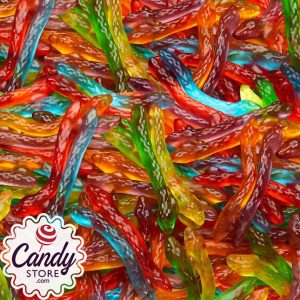 Two is better than one, which is why Haribo Twin Snakes are better than single gummy snakes. You get more chewy goodness in every bite with these double serpents, one sweet and one sour. Each piece includes two separate snake shapes with head and scales. They are connected just below the head and above the tail to form one two-color treat. Try gummy snakes in orange and purple, red and blue, or green and yellow.