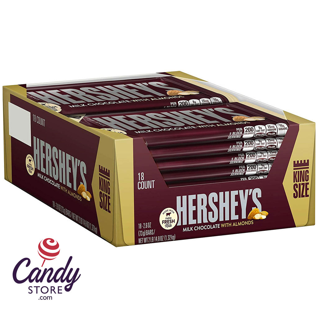 If this candy bar is king, then the almonds must be the crown jewels! These King Size Hershey’s Milk Chocolate Bar With Almonds are true royalty of the candy world with their melty milk chocolate and sophisticated almond pieces.