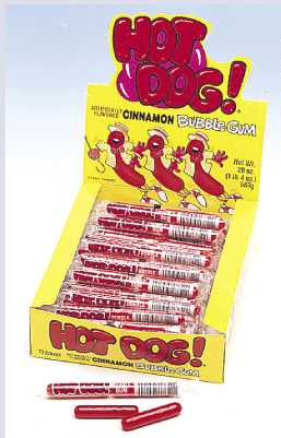 Hot Dog Bubble gum is perfect for decorative additions to any edible holiday decor. For Businesses they are a great addition to that candy fundraiser in the break room, or lobby. Sell them for 5 cents apiece and watch your goals. Each pack comes with two hot dog links that double as two pieces of gum. Hot Dog Cinnamon Bubblegum comes in a retro style display box and contains 72 packs of links for 144 hot dogs.