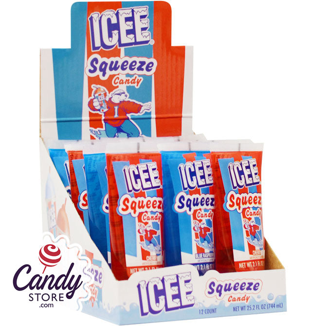 ICEE squeezeable gel candy tastes like Cherry and Blue Raspberry ICEEs. Grab a bottle and squeeze that sweet ICEE goodness straight to your belly. Display box.