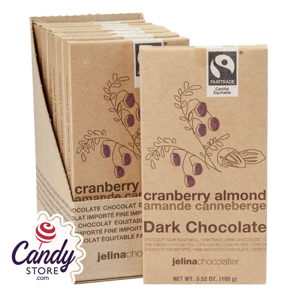 Jelina Cranberry Almond 72% Dark Chocolate 3.35oz Bar – 8ct