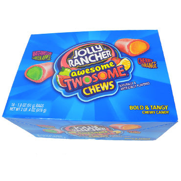 Two is always better than one. With these Jolly Rancher Awesome 2Some Chews, that’s totally true! That’s because these candies have double the deliciousness by combining two flavors into one chewy candy. Cherry/orange and watermelon/green apple await you are your taste buds with this bulk order.