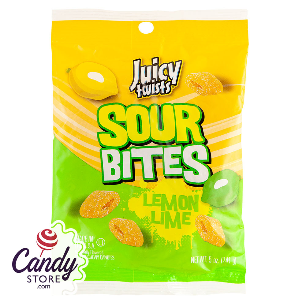Kenny’s Juicy Twists Sour Bites Lemon Lime 5oz Peg Bag – 12ct