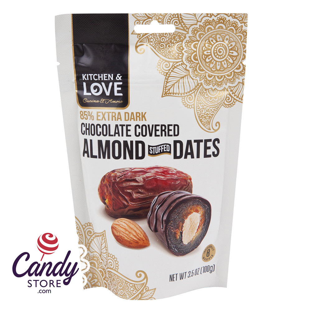 Kitchen & Love Dark Chocolate 85% Covered Almond Stuffed Dates – 8ct Pouches
