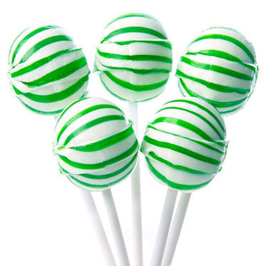 These Large Green Striped Ball Lollipops give a whole new meaning to the phrase “going green. ” Our interpretation is that with one lick of these amazing pops, your taste buds will explode with delicious fruity flavor and your tongue will glow green. What will yours be?