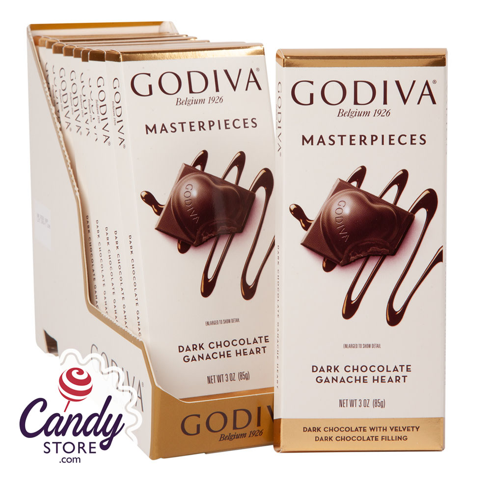 Masterpieces Dark Godiva Chocolate Ganache Heart 3oz Tablet Bar – 10ct