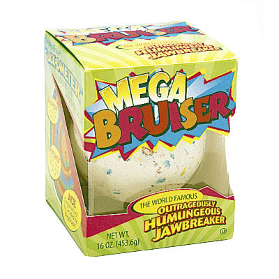 At 3 1/4” , this Mega Jawbreaker is the King Kong of the candy world and will provide hours and hours of futile biting Know some tough guys who want a candy that fights back? Want to surprise your little ones with a candy that lasts and lasts? Want to make a gift to a candy fan even more memorable? These hefty bruisers can stand up to the pressure and take on any event you throw at them. Start the fight today.