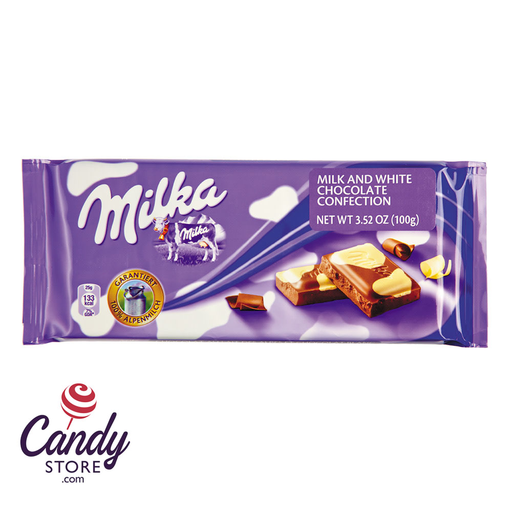 Milka Happy Cow Milk And White Chocolate Bar 3.5oz – 23ct