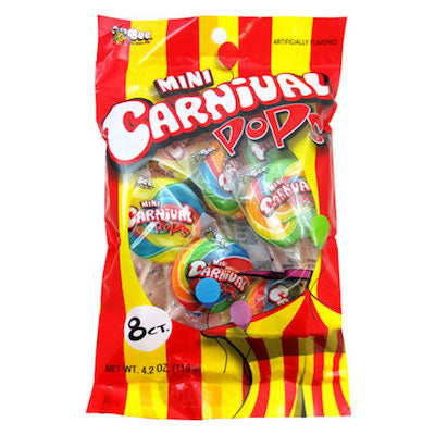 Mini Carnival Pops are rainbow swirl carnival style lollipops in miniature size. These bite-size sucker pops are colorful and fun and perfect for turning any daily routine activity into your own little carnival.