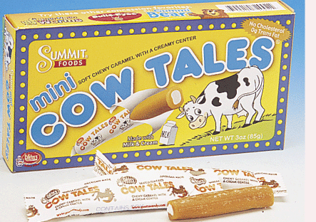 Mini Cow Tales take your favorite childhood treat and makes it smaller for quick snacking. The original Cow Tales candy was introduced in 1984 and offered a new way to enjoy Goetze’s famous caramels. Instead of a bite-sized morsel, Cow Tales featured a length of caramel with a creamy filling.