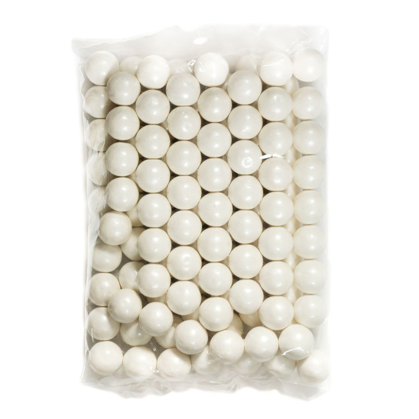 Gorgeous pearl white color gumballs in bulk. Look great at parties, events and weddings as part of a color-themed candy buffet. Sparkling shiny gumballs always look stunning on display. Available in large 1-inch and smaller half-inch gumballs.