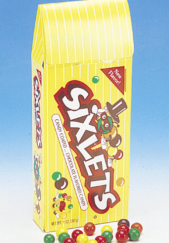 Theater box Sixlets is the easiest way to get more of the chocolate candy you love! Each dainty Sixlet features a round orb of carob and cocoa candy. The outside is covered in a solid blanket of smooth candy in one of five brilliant colors.