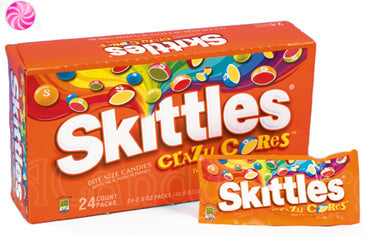 Why enjoy just one Skittles flavor when you can get at least two in every bite? Skittles Crazy Cores offer a unique combination of flavors that will make your taste buds tingle. Just like regular Skittles, Crazy Cores include a soft, chewy center with a delightful candy shell exterior.