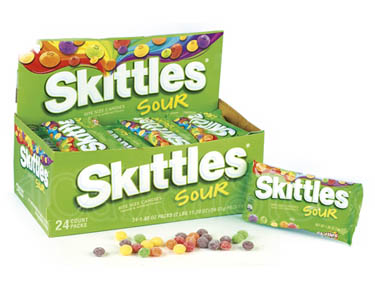 If you are looking for a new twist on skittles then you should try the sour skittles. These are fun and exciting for people of all ages. They also come in many different colors such as pink, purple, green, blue, and yellow. This means that you will get to enjoy a variety of colors and flavors. The texture of these is the same as the regular skittles meaning that they are soft but chewy.