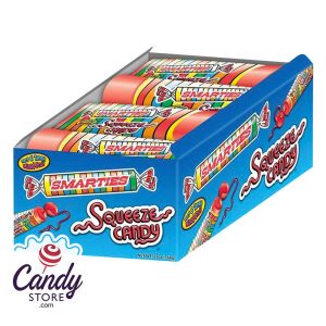Smarties Squeeze Candy takes this famous treat to a whole new level! You’ve had the discs and the chews, so now you can try the gel! Each includes a toothpaste shaped tube with a cap. Flip the cap up and squeeze to reveal a bright red gel candy. Take a bite and taste a blend of tart and tangy mixed fruit flavor. Our bulk Smarties Squeeze candy box contains many tubes that are great for gift giving and party favors!