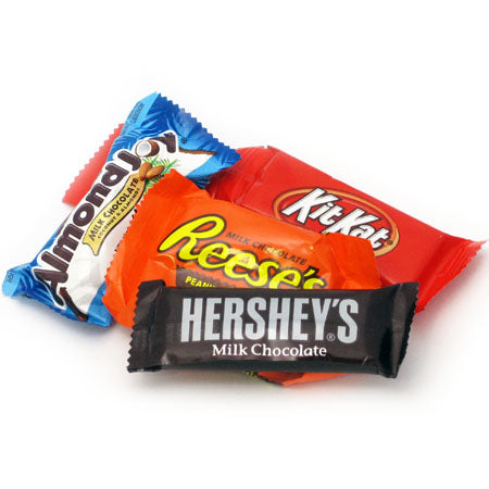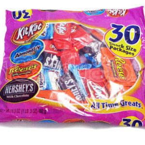 Your favorite candy bars are now available in the best sizes around a bulk size bag filled with snack size candies! Savor the chocolatey goodness with a tantalizing selection of Hershey’s Milk Chocolate Bars, Reese’s Peanut Butter Cups (full size), Kit Kat Bars and Almond Joy.
