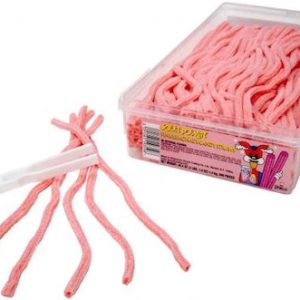 Pink lemonade Sour Power Straws are a delicious treat for kids and adults! Each length is narrow and round, with flat ends to create a flexible straw. Kids will love twisting and tying their snack (and maybe some adults, too!). This version comes in pink lemonade with a matching pink color and generous helping of sour sugar granules sprinkled over every inch. Treat your taste buds to the tangy taste of pink lemonade Sour Power Straws!