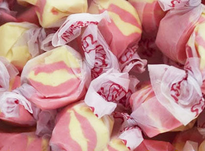 Strawberry banana salt water taffy will wash your taste buds with waves of sweet flavor! Salt water taffy has been a favorite among travelers ever since it was created in 1883.For over a century, families have been buying boxes of salt water taffy as souvenirs for loved ones back home. Now you can enjoy the chewy taste of classic salt water taffy without an expensive beach vacation! No matter how far inland you may be, our taffy is ready to ship right to your location!Many flavors are available, but our strawberry banana is definitely a must-try for fruit lovers. Enjoy the juicy sensation of fresh picked strawberries blended with the exotic taste of ripe bananas. The best part is that this fruit candy never over ripens! Keep it in your pantry or cupboard to satisfy unexpected cravings or buy our single flavor bulk salt water taffy for special events like weddings, parties and picnics!