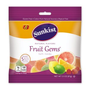 Sunkist Fruit Gems are a classic disc of fruity gel candies coated in a delicious layer of sugar and just wasting for you to plop straight onto your tongue. Shareable bags.