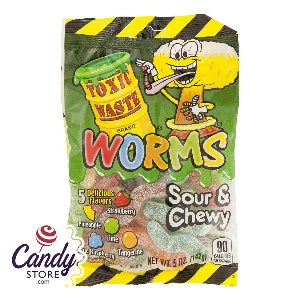 Toxic Waste Sour And Chewy Gummy Worms 5oz Peg Bag – 12ct