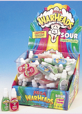 Double Drops take that same intense flavor and puts it in liquid form. Our bulk Warheads Super Sour Double Drops box contains many bottles, each holding a single flavor. Test your mettle against the unstoppably sour taste of liquid Warhead candy!